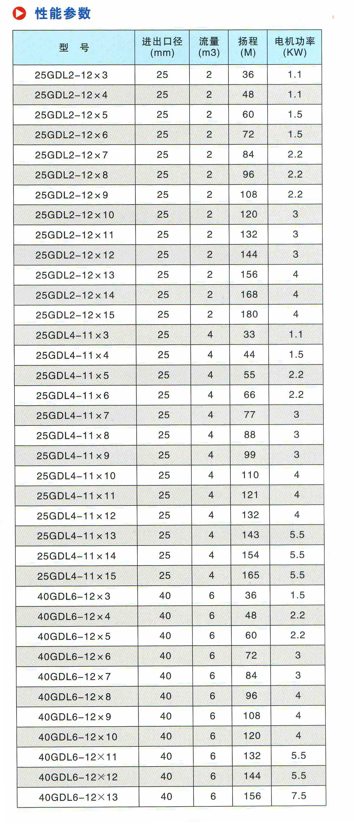 水泵參數說明